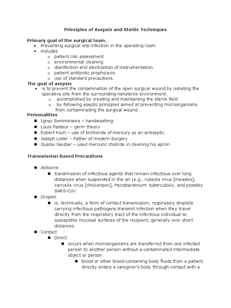 Principles of Surgical Asepsis - Nursing Crib